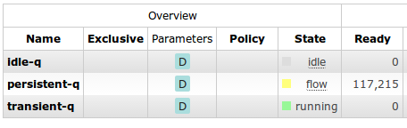- A connection is in flow control, but none of its channels are - This means that one or more of the channels is the bottleneck; the server is CPU-bound on something the channel does, probably routing logic. This is most likely to be seen when publishing small transient messages.